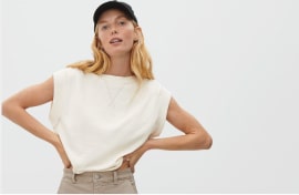 Has a really nice fit however it loses many fluffs and is kind of see-through because the fabric is quite wid-meshed.Nevertheless it's a really good and comfy staple that goes with every kind of outfit.